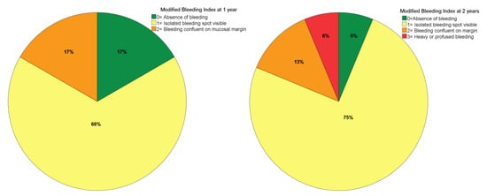Modified bleeding index levels at 1- and 2-years of follow-up.