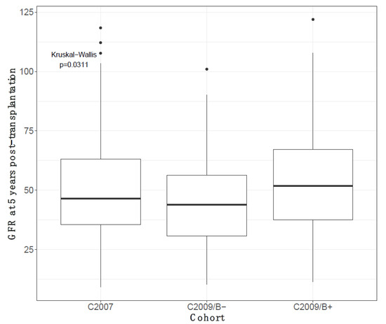 Chicago/Turabian StyleTerrec, Florian, Johan Noble, Hamza Naciri-Bennani, Paolo Malvezzi, Bénédicte Janbon, Camille Emprou, Diane Giovannini, Lionel Rostaing, and Thomas Jouve. 2021. "Protocol Biopsies on de novo Renal-Transplants at 3 Months after Surgery: Impact on 5-Year Transplant Survival" Journal of Clinical Medicine 10, no. 16: 3635. https://doi.org/10.3390/jcm10163635