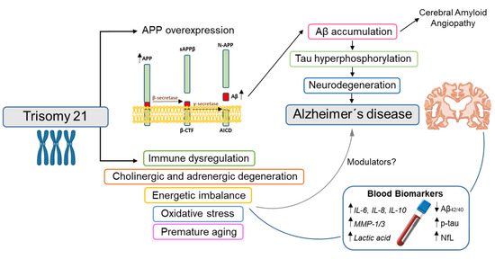 - Handen, B.L. The Search for Biomarkers of Alzheimer’s Disease in Down Syndrome. Am. J. Intellect. Dev. Disabil. 2020, 125, 97–99. [Google Scholar] [CrossRef] [PubMed]