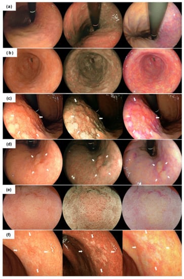 - Dohi, O.; Majima, A.; Naito, Y.; Yoshida, T.; Ishida, T.; Azuma, Y.; Kitae, H.; Matsumura, S.; Mizuno, N.; Yoshida, N.; et al. Can image-enhanced endoscopy improve the diagnosis of Kyoto classification of gastritis in the clinical setting? Dig. Endosc. 2020, 32, 191–203. [Google Scholar] [CrossRef] [Green Version]