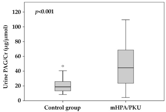 3.1. Urine PAG in mHPA/PKU Patients and Healthy Controls