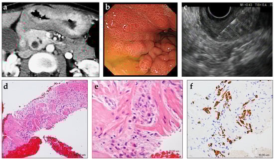 - Ye, Y.; Tan, S. Endoscopic Ultrasound-Guided Fine-Needle Aspiration Biopsy for Diagnosis of Gastric Linitis Plastica with Negative Malignant Endoscopy Biopsies. Oncol. Lett. 2018, 16, 4915–4920. [Google Scholar] [CrossRef]