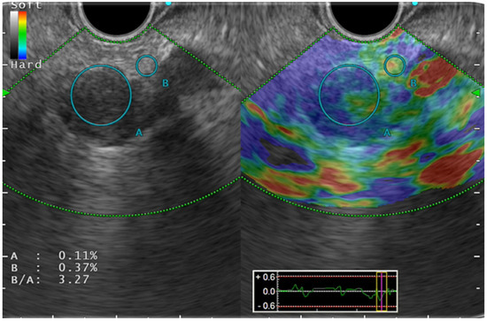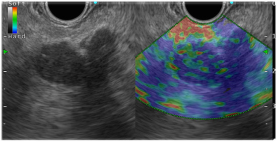 - Rustemović, N.; Kalauz, M.; Grubelić Ravić, K.; Iveković, H.; Bilić, B.; Ostojić, Z.; Opačić, D.; Ledinsky, I.; Majerović, M.; Višnjić, A. Differentiation of pancreatic masses via endoscopic ultrasound strain ratio elastography using adjacent pancreatic tissue as the reference. Pancreas 2017, 46, 347–351. [Google Scholar] [CrossRef]