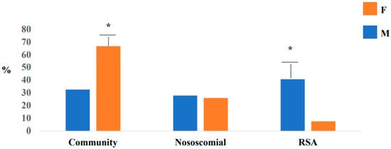 Epidemiological link by gender differences, * p < 0.001. RSA (Residence assistance for elderly).