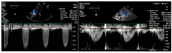 - Benfari, G.; Nistri, S.; Cerrito, L.F.; Maritan, L.; Tafciu, E.; Setti, M.; Bursi, F.; Tadiello, E.; De Manna, N.D.; Rossi, A.; et al. Usefulness of the Right Parasternal Echocardiographic View to Improve the Hemodynamic Assessment After Valve Replacement for Aortic Stenosis. Am. J. Cardiol. 2020, 142, 103–108. [Google Scholar] [CrossRef] [PubMed]