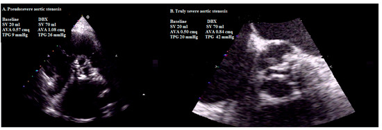 - Annabi, M.-S.; Touboul, E.; Dahou, A.; Burwash, I.G.; Bergler-Klein, J.; Enriquez-Sarano, M.; Orwat, S.; Baumgartner, H.; Mascherbauer, J.; Mundigler, G.; et al. Dobutamine Stress Echocardiography for Management of Low-Flow, Low-Gradient Aortic Stenosis. J. Am. Coll. Cardiol. 2018, 71, 475–485. [Google Scholar] [CrossRef] [PubMed]