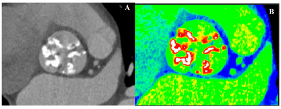- Clavel, M.A.; Pibarot, P.; Messika-Zeitoun, D.; Capoulade, R.; Malouf, J.; Aggarval, S.; Araoz, P.A.; Michelena, H.I.; Cueff, C.; Larose, E.; et al. Impact of aortic valve calcification, as measured by MDCT, on survival in patients with aortic stenosis: Results of an international registry study. J. Am. Coll. Cardiol. 2014, 64, 1202–1213. [Google Scholar] [CrossRef] [PubMed]