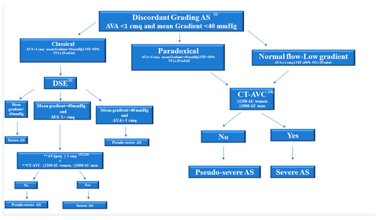 - Clavel, M.A.; Messika-Zeitoun, D.; Pibarot, P.; Aggarwal, S.R.; Malouf, J.; Araoz, P.A.; Michelena, H.I.; Cueff, C.; Larose, E.; Capoulade, R.; et al. The complex nature of discordant severe calcified aortic valve disease grading: New insights from combined Doppler echocardiographic and computed tomographic study. J. Am. Coll. Cardiol. 2013, 62, 2329–2338. [Google Scholar] [CrossRef]