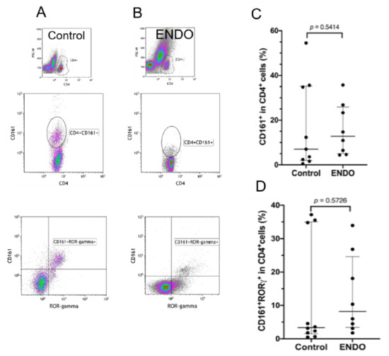 - Pashizeh, F.; Mansouri, R.; Davari-Tanha, F.; Hosseini, R.; Asgari, Z.; Aghaei, H.; Najafi Arbastan, F.; Rajaei, S. Alterations of CD4+T Cell Subsets in Blood and Peritoneal Fluid in Different Stages of Endometriosis. Int. J. Fertil. Steril. 2020, 14, 201–208. [Google Scholar] [CrossRef] [PubMed]