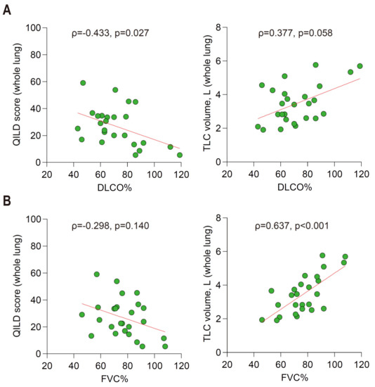 3.2. Validity 1: Association Patterns between QILD Score and Pulmonary Function