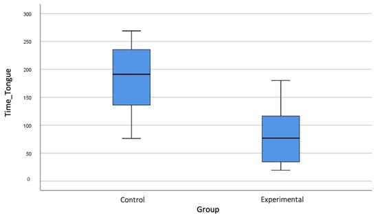 Bloxplot showing differences between control and experimental groups in tongue numbness recovery time.
