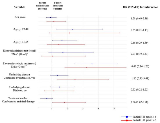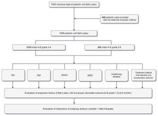 - Yoo, M.C.; Soh, Y.; Chon, J.; Lee, J.H.; Jung, J.; Kim, S.S.; You, M.-W.; Byun, J.Y.; Kim, S.H.; Yeo, S.G. Evaluation of Factors Associated with Favorable Outcomes in Adults with Bell Palsy. JAMA Otolaryngol. Head Neck Surg. 2020, 146, 256–263. [Google Scholar] [CrossRef]