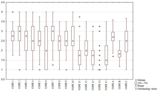 - COPE B—avoidant behavior—this category consists of strategies 9, 11, 12, 13, 14 and 15;