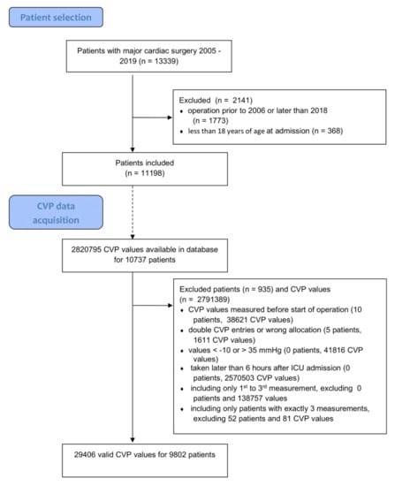 - If fewer than three CVP values were available per case within six hours of ICU admission, this case was not included in analysis