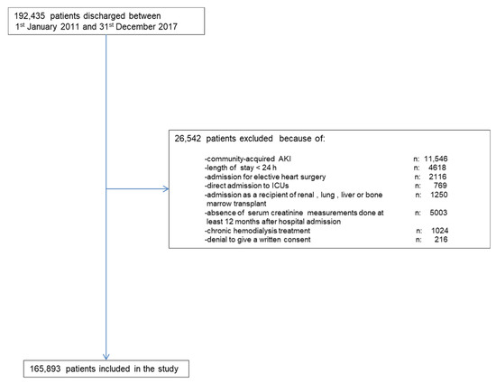 - Hsu, C.-Y.; McCulloch, C.E.; Fan, D.; Ordoñez, J.D.; Chertow, G.M.; Go, A.S. Community-Based Incidence of Acute Renal Failure. Kidney Int. 2007, 72, 208–212. [Google Scholar] [CrossRef] [PubMed] [Green Version]