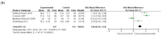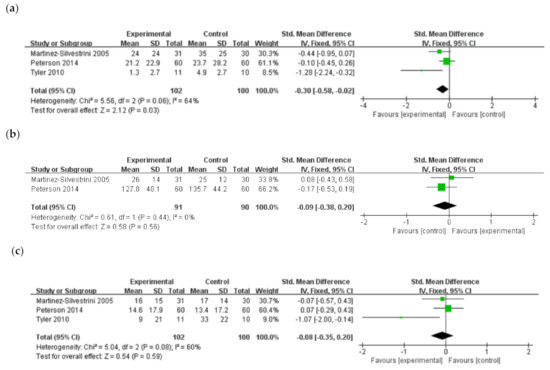 35. Huedo-Medina, T.B.; Sanchez-Meca, J.; Marin-Martinez, F.; Botella, J. Assessing heterogeneity in meta-analysis: Q statistic or I2 index? Psychol. Methods 2006, 11, 193–206. [Google Scholar] [CrossRef] [PubMed] [Green Version]