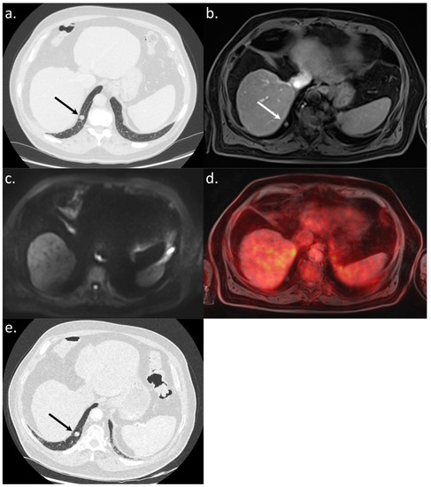 - Biondetti, P.; Vangel, M.G.; Lahoud, R.M.; Furtado, F.S.; Rosen, B.R.; Groshar, D.; Canamaque, L.G.; Umutlu, L.; Zhang, E.W.; Mahmood, U.; et al. PET/MRI assessment of lung nodules in primary abdominal malignancies: Sensitivity and outcome analysis. Eur. J. Nucl. Med. Mol. Imaging 2021, 48, 1976–1986. [Google Scholar] [CrossRef]