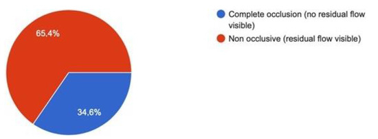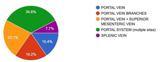 Portomesenteric vein thrombosis is a known complication after bariatric surgery. In our survey, only 29.21% of responders reported at least one case of PMVT in their practice, most of them coming from high-volume bariatric centres, with no significant differences in gender. Although rare, its incidence has been increasing on par with the number of bariatric procedures performed worldwide, occurring in 0.3–0.4% of cases, mostly after LSG (78.9%) and RYGB (13.8%) [7,8]. Our survey reflects the data in the literature, with LSG being the procedure most associated with PMVT, followed by RYGB and LAGB.