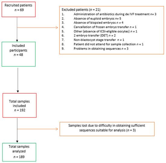 This pilot prospective cohort study took place in a private assisted reproduction clinic. It included women presenting to the fertility clinic for IVF from May 2017 to May 2019 who met the following inclusion criteria: aged 18–50 years; undergoing frozen embryo transfer (FET) with euploid embryos, using either their own or donated gametes; and an indication to use the intracytoplasmic sperm injection (ICSI) method to generate embryos. Exclusion criteria were: the use of antibiotics in the three months preceding the fertility treatment, uterine malformations, untreated hydrosalpinx, known implantation failure factors, or unwillingness to sign informed consent.