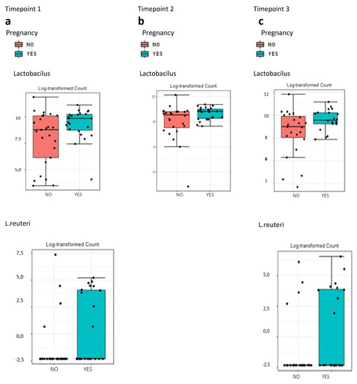 Lactobacillus spp. could be indicative of more favorable conditions. Since no statistically significant differences were obtained when analyzing the differences in relative abundance between samples taken at three different timepoints of the cycle, we concluded that the vaginal sample could be taken at any timepoint to obtain similar findings. The microbiome is usually affected by ovarian steroids, and the FET cycle may be related to higher local serum progesterone (P4) levels than in the previous cycle (timepoint 1). However, since all patients had one endometrial preparation per hormonal cycle substituted, we considered that this factor was homogeneous for all study participants.