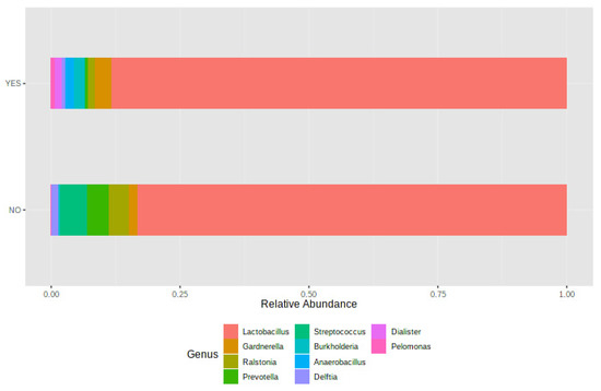 Burkholderia spp. were not detected in the microbiota of the endometrium in any sample women without RIF, but they were present in a quarter of the RIF patients. In our study, alpha diversity was higher at the endometrial level in women without RIF. This did not occur in vaginal samples, where no differences were observed. In addition, according to our findings and the available literature, a greater microbial diversity in the case of the vaginal and endometrial microbiota seems to be a scenario most unfavorable for the success of IVF treatments. The results of alpha diversity should be interpreted with caution, especially in patients with RIF. A detailed knowledge of the composition of this microbial pattern is necessary in order to know the % relative abundance of the genera, species, and subspecies present in the samples, and even to examine in depth the presence of pathogens that may have an effect on the vagina and/or endometrium. In the above-mentioned study, the authors found differences in the endometrial microbiota in both groups. When we analyzed the taxonomic characterization, we also observed clear differences in the relative abundances of the different genera and species in the endometrial microbiome between women with and without RIF. Unlike Kitaya et al. [