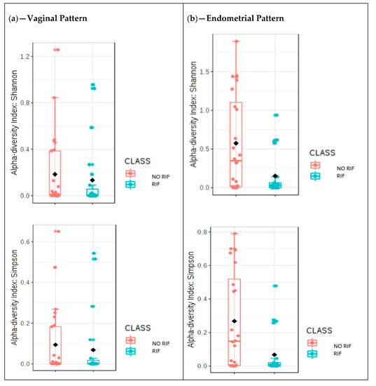 Another important aspect of the present study is the assessment of both diversity and taxonomic characterization according to participants’ history of RIF. Previously, the endometrial and vaginal microbiota were characterized by Kitaya et al. [
