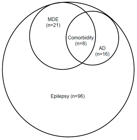 Comorbidity of MDE with AD in the group of epileptic patients (n = 96).