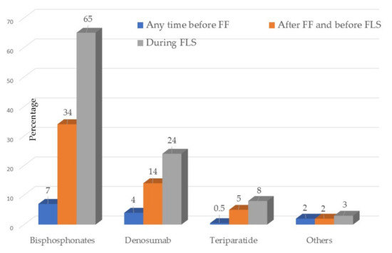 Any time in the past and current specific drugs for osteoporosis. FF Fragility fractures FLS Fracture Liaison Service.