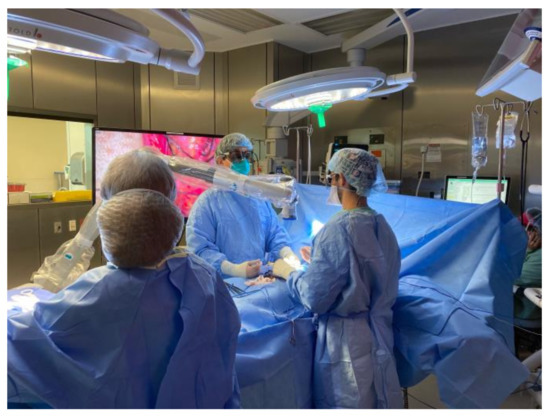 Studies in male microsurgery have demonstrated that these technologies have promising improvements in operating times, and turnover time between cases, as well as an improvement in surgeon ergonomics. They also have non-inferior outcomes in animal models [34,39]. The set-up, as seen in Figure 1, requires less operating room space, and its design also facilitates easy transportability. This may also facilitate opportunities for trainee practice outside of the operating room, and supervision by multiple individuals, given the large high-definition screens. Furthermore, its promise has been shown to varying degrees in numerous other subspecialties, including plastic surgery, neurosurgery, general surgery, and vascular surgery [40,41,42]. However, given the enormous upfront costs associated with purchasing a new device, and the lack of comfort for surgeons, the uptake continues to be slow.