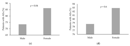 - Lie, M.R.; Kreijne, J.E.; van der Woude, C.J. Sex Is Associated with Adalimumab Side Effects and Drug Survival in Patients with Crohn’s Disease. Inflamm. Bowel. Dis. 2017, 23, 75–81. [Google Scholar] [CrossRef]