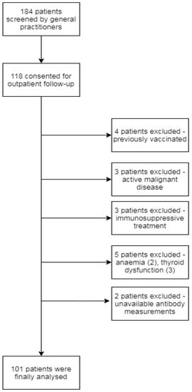 A total of 184 patients were eligible for participation in the study, of whom 118 consented for the outpatient baseline assessment and the collection of blood and urine samples. A total of 17 patients were excluded because they did not fulfil inclusion criteria at baseline visit (see Figure 1).