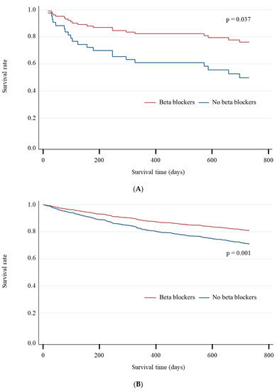 3.4. Different Impact of Beta-Blockers between Patients with and without COPD