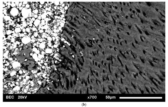 Prior to root canal treatment, all teeth were investigated under a stereomicroscope (Expert DN, Müller Optronic, Erfurt, Germany) to exclude cracks or root resorption. Buccal and proximal radiographs were taken to ensure a single root canal with an intact apical region and a single apical foramen. All teeth were cut coronally to a total length of 20 mm and access cavities were prepared when necessary. Apical patency of the root canal was checked using K-Files #10 and 15, and a working length of 19 mm was established. All root canals were instrumented using the ProTaper Gold NiTi system (Dentsply Sirona, York, PA, USA) up to size F3. The root canal was irrigated with 2.5 ml NaOCl 3% after each file and patency was checked after each instrument. After instrumentation, all root canals were irrigated twice with 2.5 mL NaOCl 3% combined with 30 s of ultrasonic activation (Irri-S, VDW.Ultra 30%-setting, VDW, Munich, Germany), 5 ml EDTA 17% and a final irrigation with 5 mL NaCl 0.9%. The roots were placed into plastic vials (Sarstedt, Numbrecht, Germany) and embedded into alginate (HenrySchein, Melville, NY, USA) as described in a previous study [15] to simulate temperature dissipation into tissues during warm vertical compaction. All roots were stored in an incubator (Memmert, Schwabach, Germany) at 37 °C and 100% humidity for 24 h before root canal obturation to ensure a specimen temperature of 37 °C. All root canal obturation procedures were performed in an incubator under this 37 °C environment as described previously [15]. Root canal obturation was performed according to the continuous wave technique using the 40/.06 heat plugger of the BeeFill obturation system (VDW) at a temperature setting of 200 °C and warm backfill. Prior to obturation, the root canals were dried using sterile paper points and either AH Plus or TFHF were inserted into the root canal using a matching F3 gutta-percha cone. After root canal obturation, the access cavities were sealed using an adhesive (OptiBond FL, Kerr, Rastatt, Germany) and composite resin (Estellite Sigma Quick Flow A3, Tokuyama, Tokyo, Japan). Afterwards, the roots were stored in an incubator for 8 weeks to ensure setting of the sealers. After incubation, the roots were removed from the alginate-filled vials and embedded horizontally into resin (Technovit 4071, Hereaus Kulzer, Hanau, Germany) after the buccal and mesial aspect of the tooth were marked and root slices with a thickness of 1 mm were cut at 2 to 3, 5 to 6 and 8 to 9 mm from the apex using a water-cooled diamond saw (Leitz, Wetzlar, Germany). To remove any smear layer, the specimens were rinsed with EDTA 17% and distilled water for 15 s each and exsiccated in a closed container afterward. Similar to other study protocols found in the literature, no ultrasonic irrigation was performed to avoid artefacts by removing sealer from the tubules [4,16,17]. The specimens’ apical surfaces were sputtered with gold, and sealer penetration was evaluated using scanning electron microscope (JSM 6510 LA, JEOL, Freising, Germany). The root sections were divided into four quadrants (buccal, mesial, oral, distal), and images were taken of each quadrant at 350× magnification. The materials pressed into the dentinal tubules were identified by EDX analysis as the above-mentioned sealers contain zirconium oxide as a radiopacifier. The highest penetration depth of sealer was recorded for each quadrant and statistical analysis was performed by the Kruskal–Wallis test (p = 0.05) as data were not normally distributed according to the Shapiro–Wilk test.