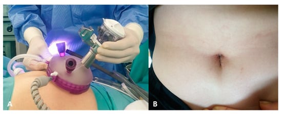 - Corrado, G.; Calagna, G.; Cutillo, G.; Insinga, S.; Mancini, E.; Baiocco, E.; Zampa, A.; Bufalo, A.; Perino, A.; Vizza, E. The patient and observer scar assessment scale to evaluate the cosmetic outcomes of the robotic single-site hysterectomy in endometrial cancer. Int. J. Gynecol. Cancer 2018, 28, 194–199. [Google Scholar] [CrossRef] [PubMed]