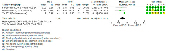 Regarding the warm and cold filling techniques, SCT with BCS has previously been associated with higher POP, while WVT with RBS has been associated with the lowest POP scores [28]. However, our pooled analysis suggests that there is a non-significant trend in favor of BCS.