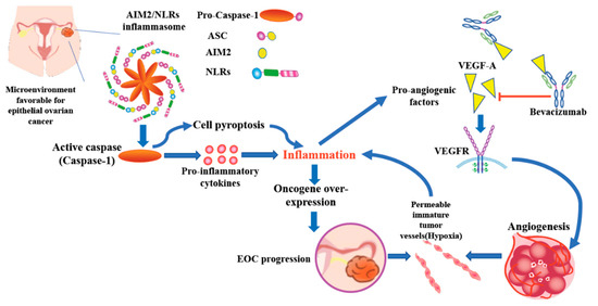 Hsu, P.-C.; Chao, T.-K.; Chou, Y.-C.; Yu, M.-H.; Wang, Y.-C.; Lin, Y.-H.; Lee, Y.-L.; Liu, L.-C.; Chang, C.-C. AIM2 Inflammasome in Tumor Cells as a Biomarker for Predicting the Treatment Response to Antiangiogenic Therapy in Epithelial Ovarian Cancer Patients. J. Clin. Med. 2021, 10, 4529. https://doi.org/10.3390/jcm10194529