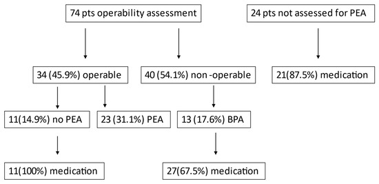 BPA and PEA were studied as there were data for the patients’ follow-up regarding their invasive therapeutic approach. The registry will continue to assess the clinical evolution of these patients to provide more robust data in the future.