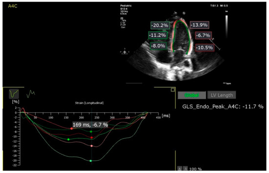 3.3. Comparison of Longitudinal Strain Values between CoA and Control Groups