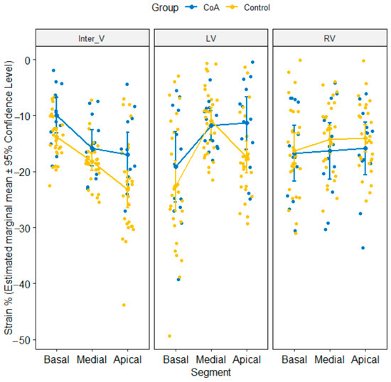3.2. Comparison of Segmental Strain Values between CoA and Control Groups