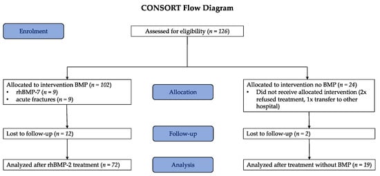 APA StyleFuchs, T., Stolberg-Stolberg, J., Michel, P. A., Garcia, P., Amler, S., Wähnert, D., & Raschke, M. J. (2021). Effect of Bone Morphogenetic Protein-2 in the Treatment of Long Bone Non-Unions. Journal of Clinical Medicine, 10(19), 4597. https://doi.org/10.3390/jcm10194597