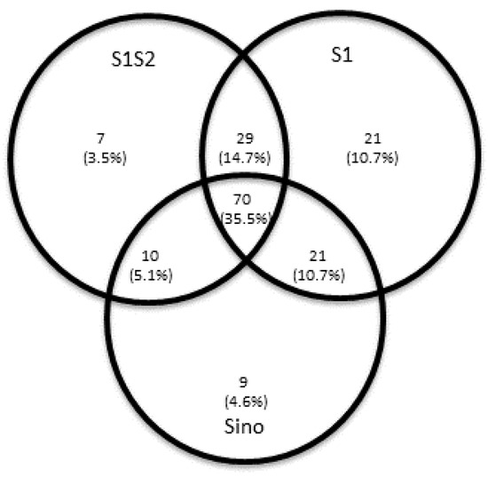 Only 70 out of 197 patients (35.5%) had a T cell specific response to all three different SARS-CoV-2 S peptide pool/protein antigens used in the ELISpot assays. Thus, an examination of only a single peptide pool would have underestimated T cell responses in the majority of patients. Most of those patients with no T cell response in the ELISpot assay belonged to the asymptomatic patient group (Figure 3).