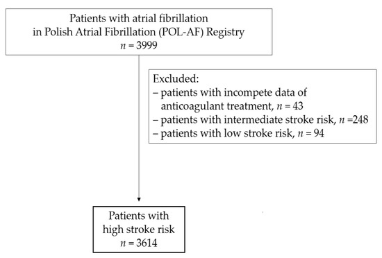 Patients with a high risk of thromboembolic complications were included in the presented study. In total, after adopting the aforementioned exclusion criteria, 3614 patients were included (Figure 1).