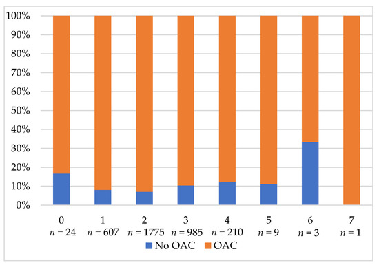 The following are available online at www.mdpi.com/article/10.3390/jcm10194611/s1, Table S1: Factors associated with the selection of OACs over no OACs for stroke prevention in AF patients: univariable logistic regression models.
