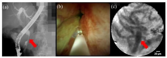 - Slivka, A.; Gan, I.; Jamidar, P.; Costamagna, G.; Cesaro, P.; Giovannini, M.; Caillol, F.; Kahaleh, M. Validation of the diagnostic accuracy of probe-based confocal laser endomicroscopy for the characterization of indeterminate biliary strictures: Results of a prospective multicenter international study. Gastrointest. Endosc. 2015, 81, 282–290. [Google Scholar] [CrossRef]
