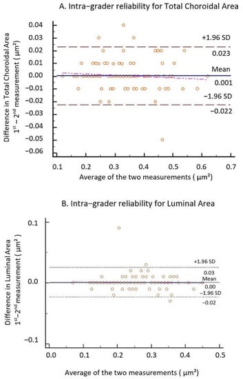 Intra-grader reliability assessment of choroidal parameters in 97 subjects.