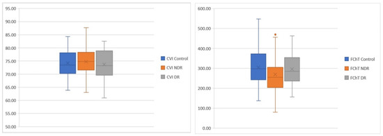 Blox plots. Differences among groups regarding CVI (left) and FChT (right).