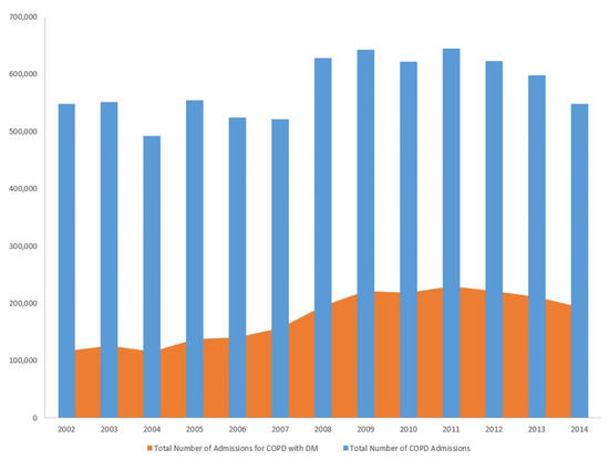 Trends of hospitalization for chronic obstructive pulmonary disease and diabetes mellitus in COPD 2005–2014.