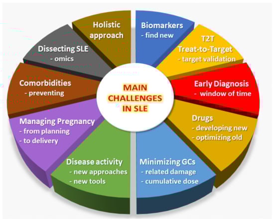 One major challenge is to implement effective strategies for earlier SLE diagnosis. These would take on greater value if a window of opportunity for SLE patients will be found and proven to improve outcomes including damage, death, recurrent flares, and Health-Related Quality of Life (HRQoL) measures.