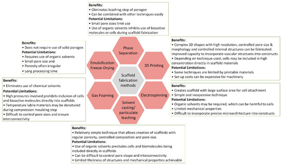 Benefits and potential limitations of different scaffold fabrication methods. Realized based on [59].