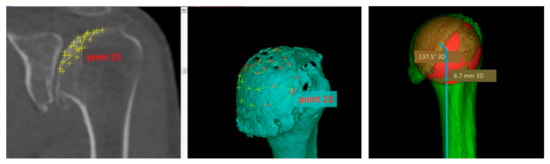 Secondly, the articular surface of the humeral head was plotted based on a scatter diagram of 24 different localized points on the three-dimensional CT reconstruction (Figure 2).